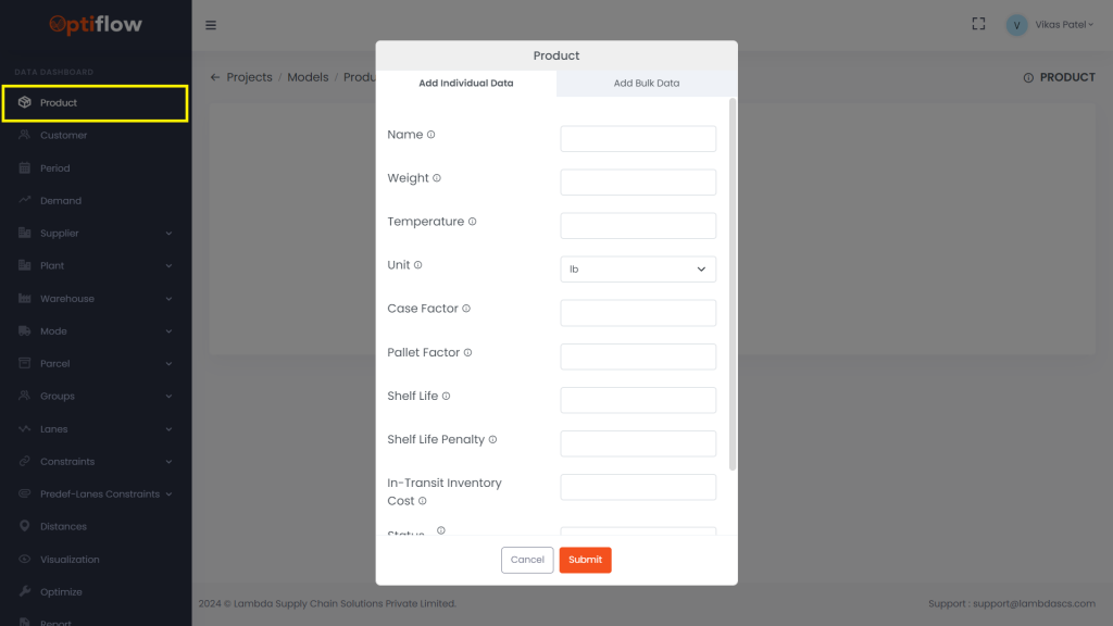 Click on Product in Data Dashboard and then by clicking on add product, you can add individual data or bulk data under respective tabs.