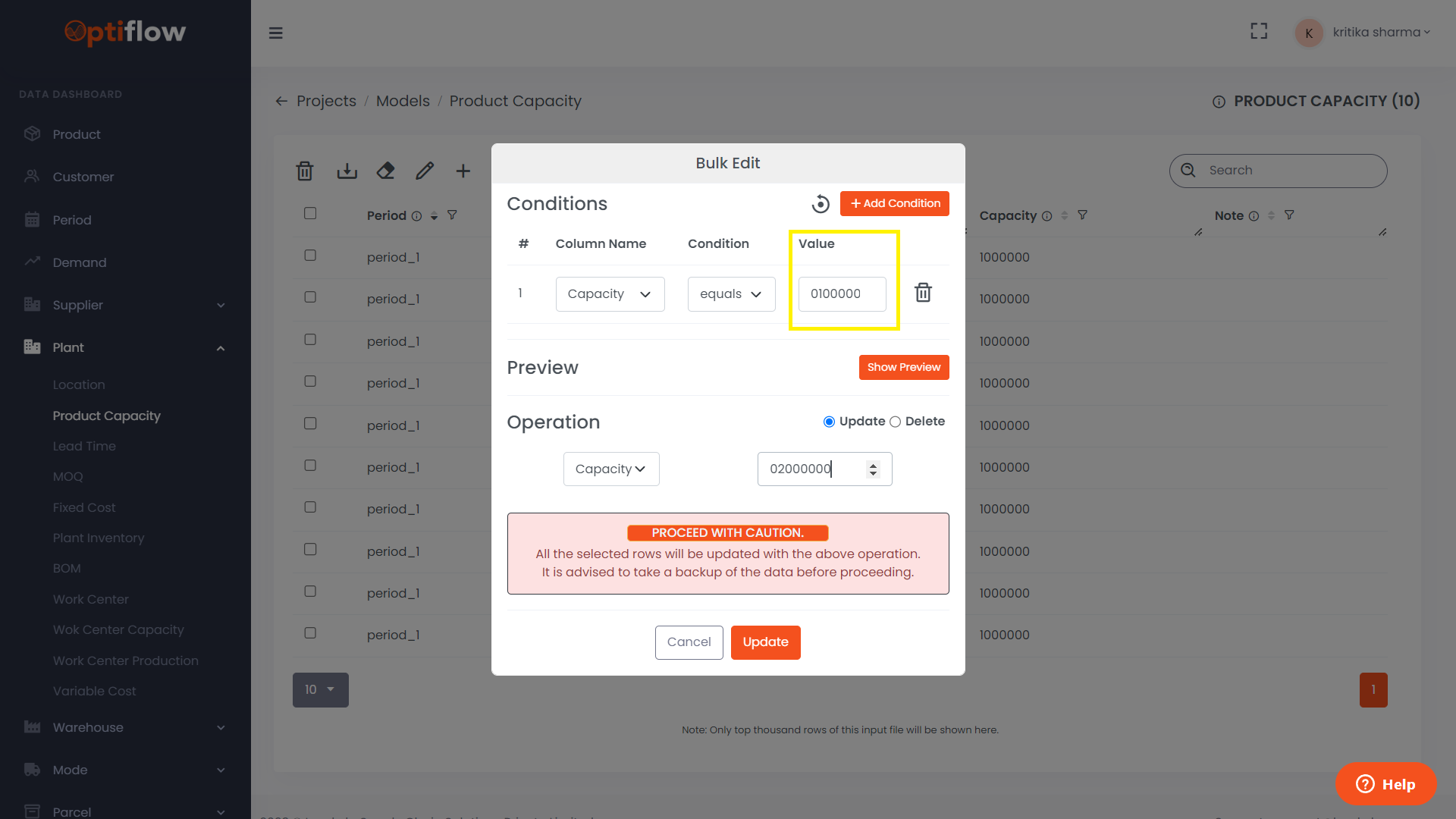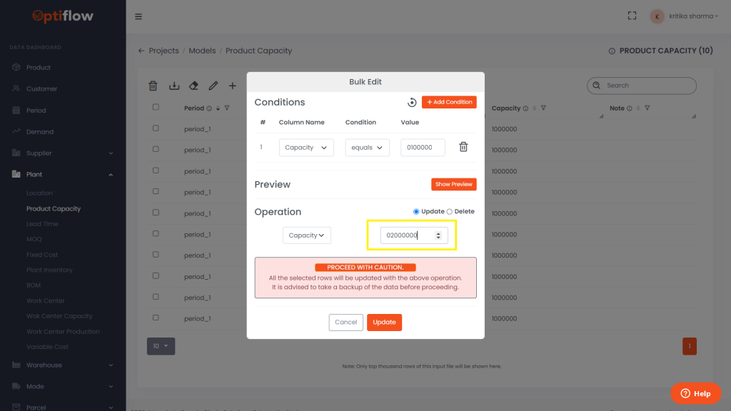 Specify the value and click on update.