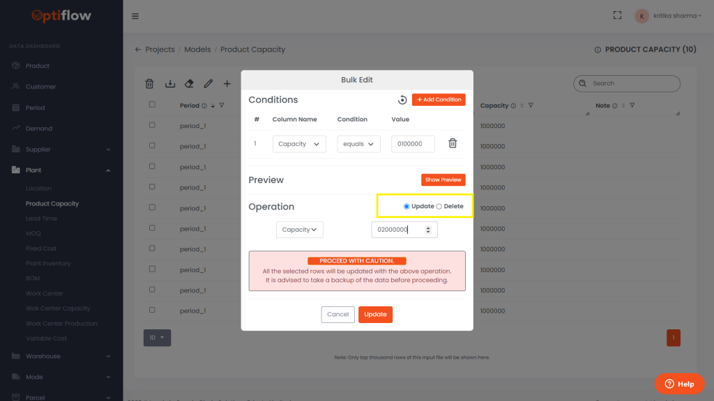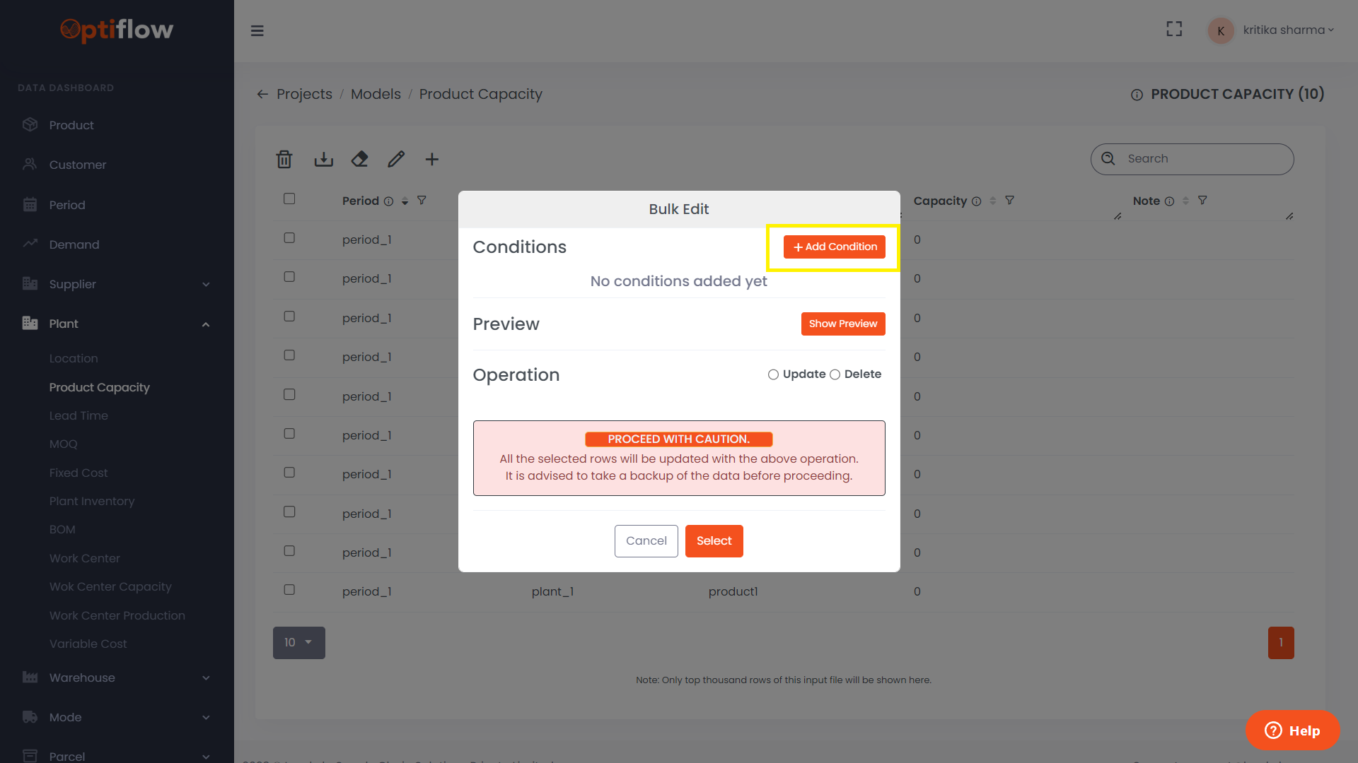 To add condition based which the table is to be updated, click on Add condition.