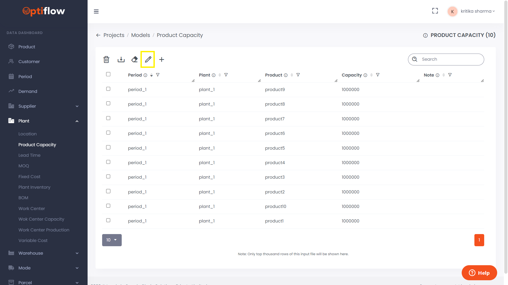 To bulk edit any table, click on the edit button