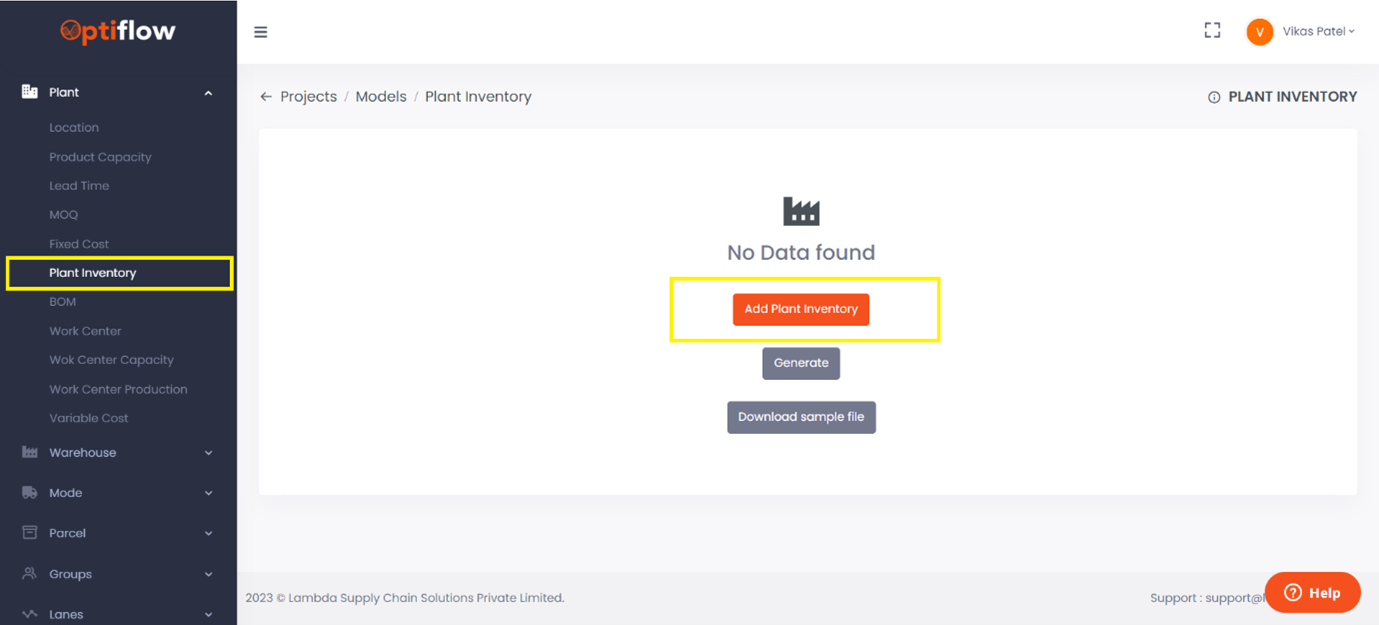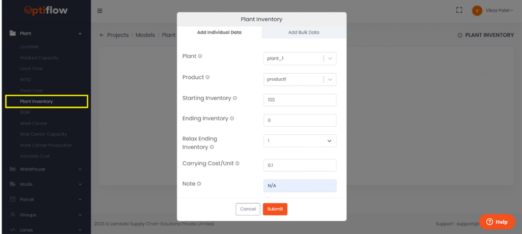 To add plant inventory, click on Plant Inventory under plants and then by clicking on add plant inventory, you can add individual data or bulk data under respective tabs.