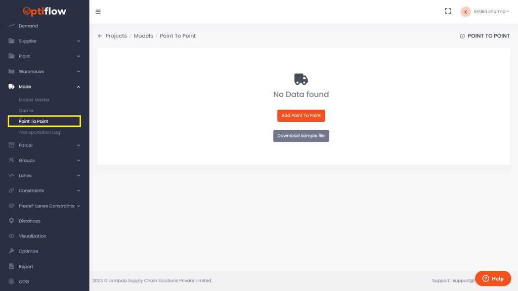 Note : The mode used in point to point table needs to be defined in carrier table