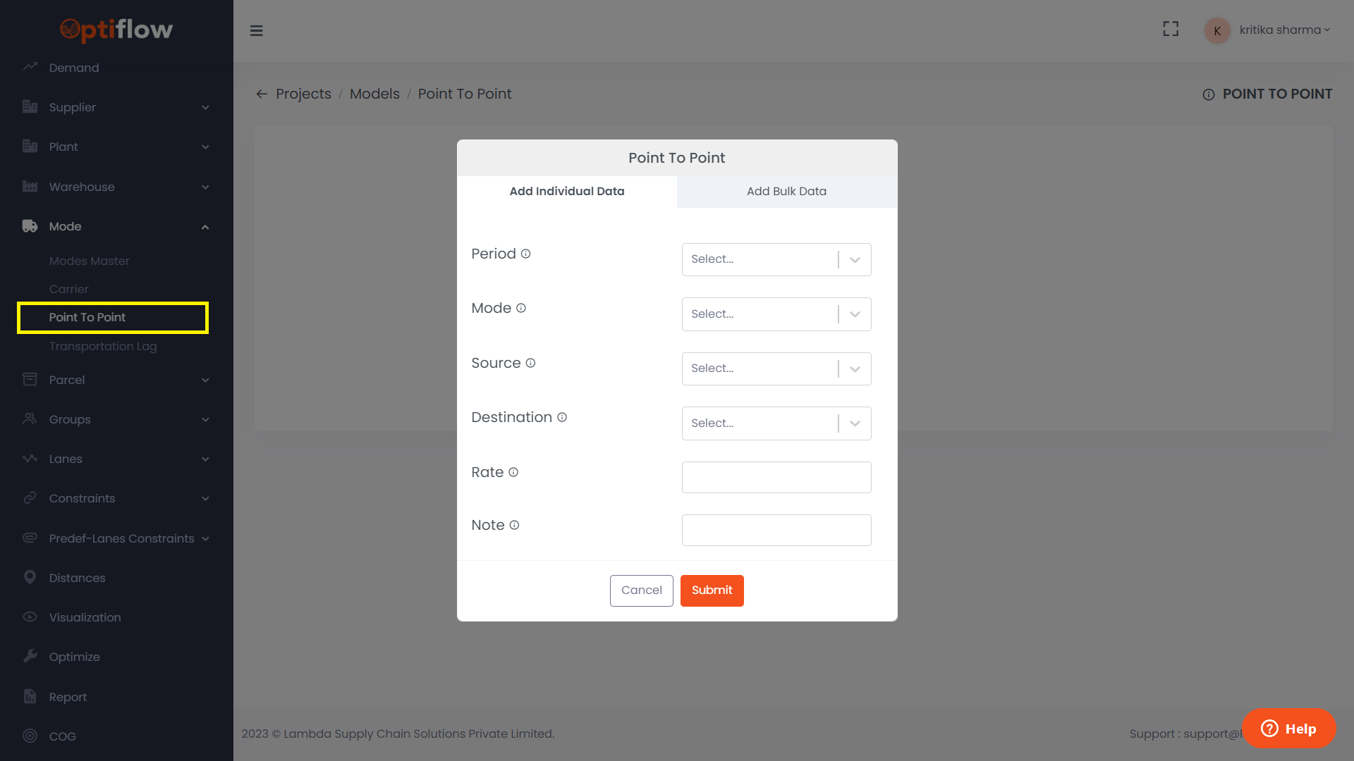 Within the “Source” field, you can specify the origin location, and in the “Destination” field, you can designate the destination location. The corresponding actual per unit rates can then be entered in the “Rate” column.