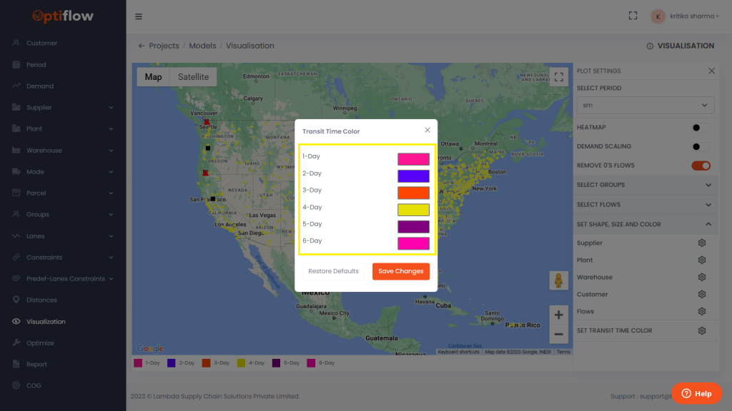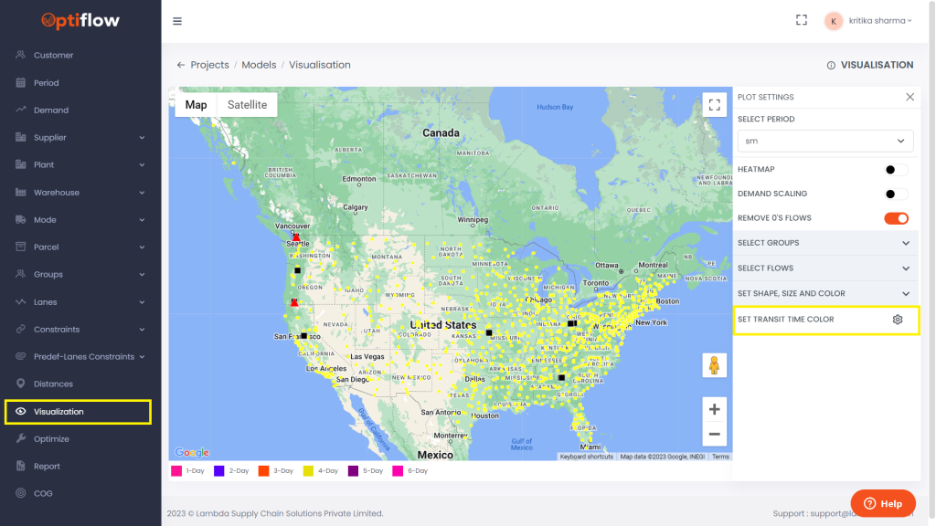 Click on the gear icon in front of “Set transit time color” in visualization.