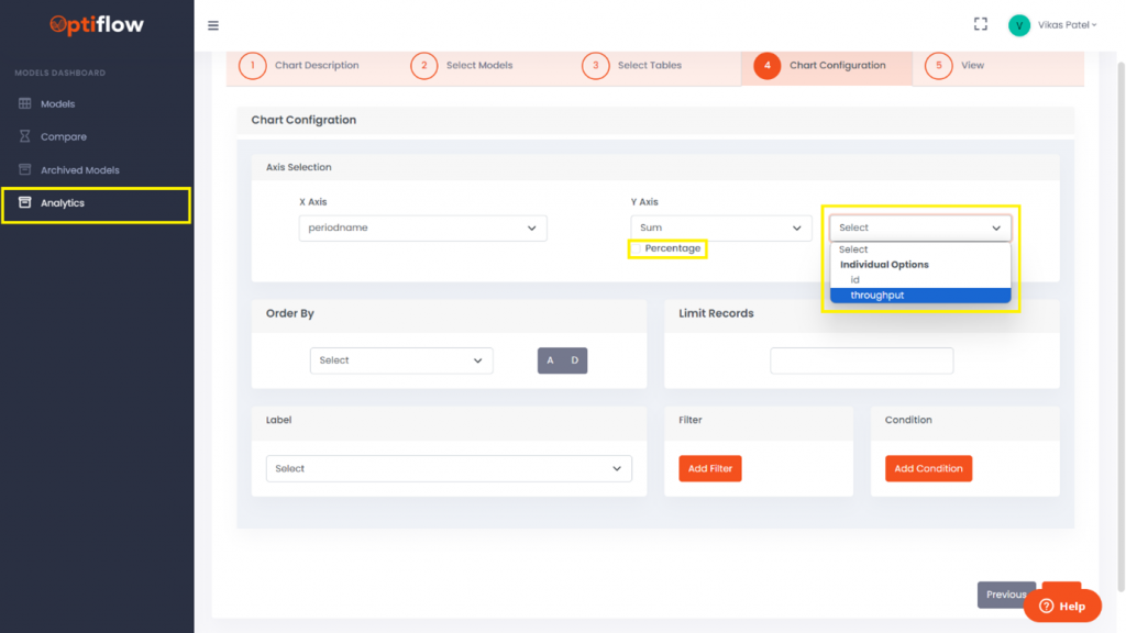 Choose the column for Y-Axis of the chart. Additionally, choose the percentage option if you prefer to represent the Y-Axis in terms of percentage.