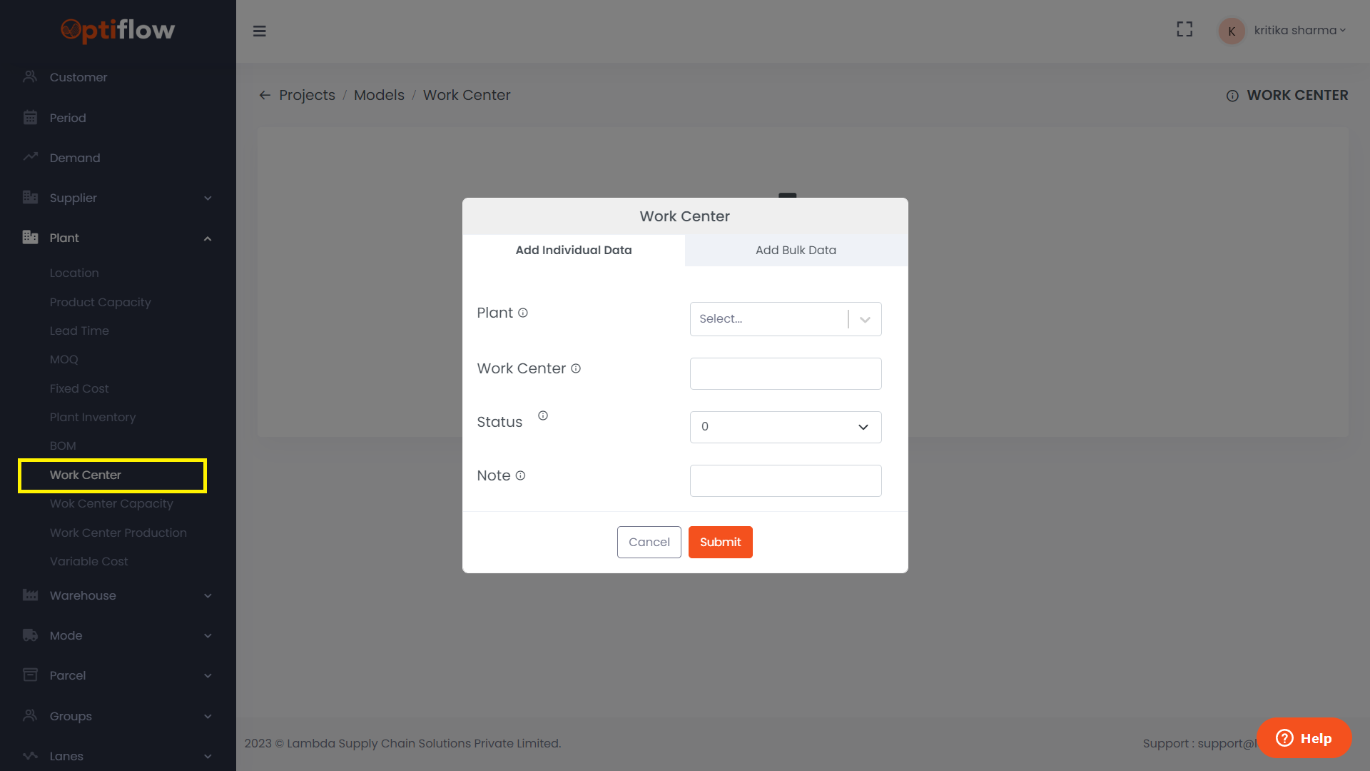 This table encompasses all possible plant and work center pairings, with a status set to 1 to denote activity.